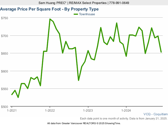 Coquitlam Average Townhouse Sold Price Per Square Foot